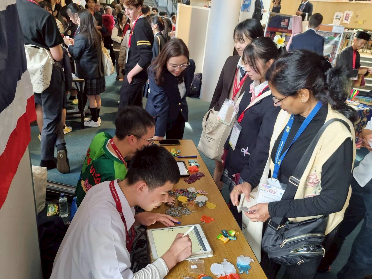 ✅ Cultural Exchange Booths และ Cultural Performances เสริมสร้างมิตรภาพและความเข้าใจระหว่างวัฒนธรรม โดยนักเรียนของเราได้จัดทำเป็นพวงกุญแจอคลิลิครูปช้าง แล้วให้ผู้เขาชมเขียนชื่อตนเองเป็นภาษาไทยและนำกลับเป็นของที่ระลึก และได้เข้าร่วมชมบูธของนักเรียนจากนานาชาติ ซึ่งเป็นการแลกเปลี่ยนวัฒนธรรมอันดีระหว่างประเทศ
