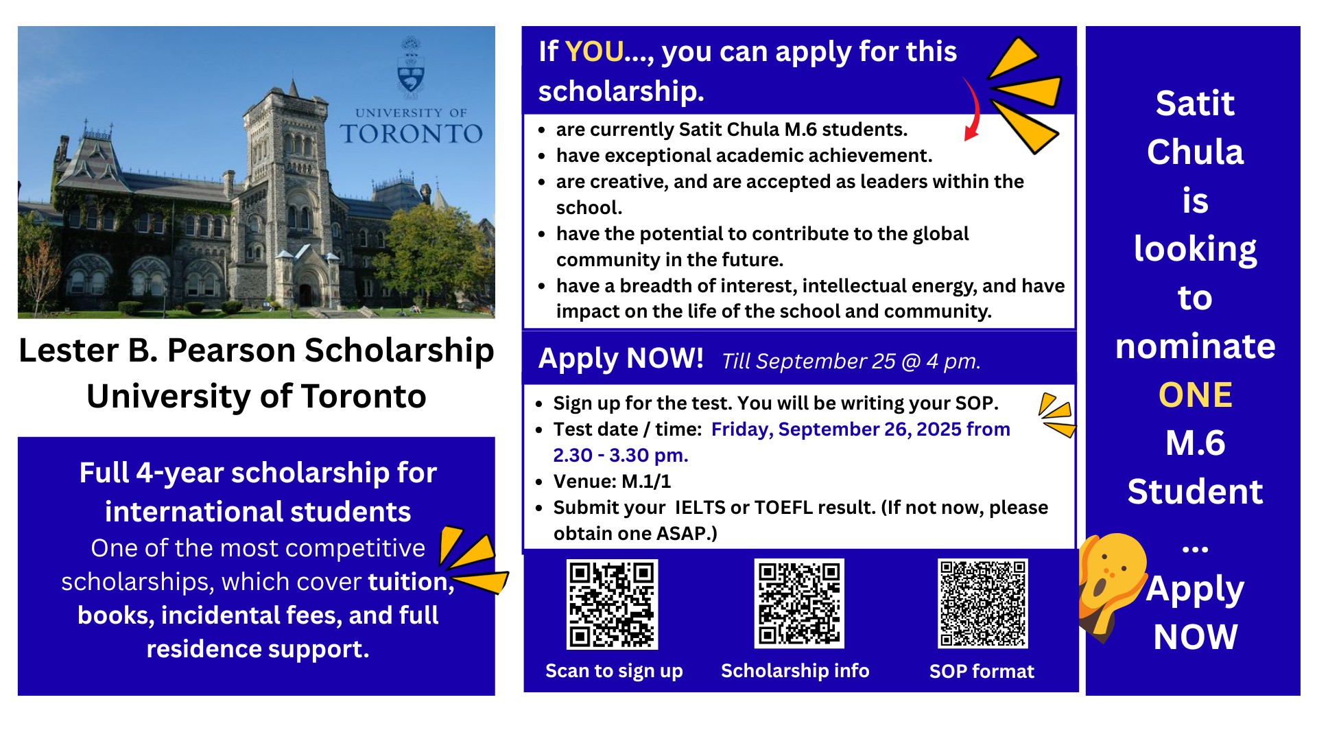 ประชาสัมพันธ์ทุนการศึกษา Lester B. Pearson Scholarship University of Toronto