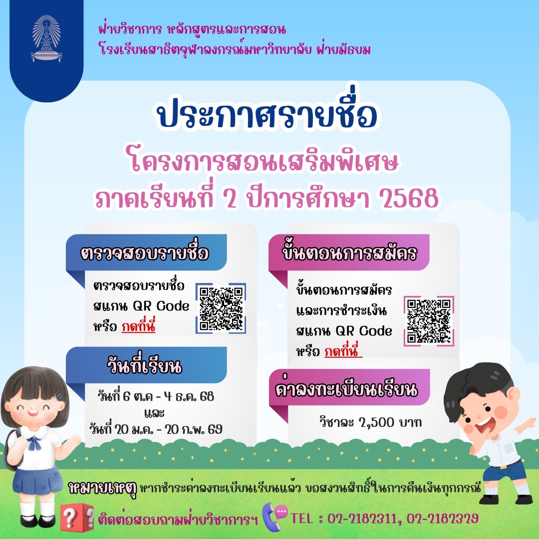 ประกาศรายชื่อนักเรียนโครงการสอนเสริมพิเศษ 2/2568