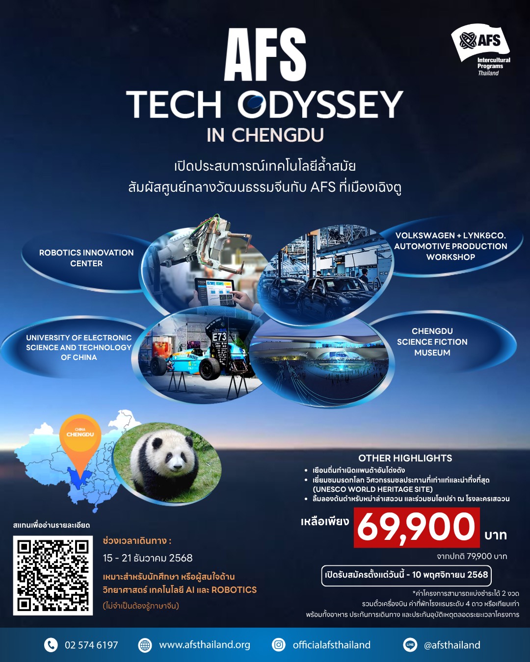ประชาสัมพันธ์โครงการ AFS Tech Odyssey in Chengdu  “เปิดประสบการณ์เทคโนโลยีล้ำสมัย สัมผัสศูนย์กลางวัฒนธรรมจีนกับ AFS ที่เมืองเฉิงตู”
