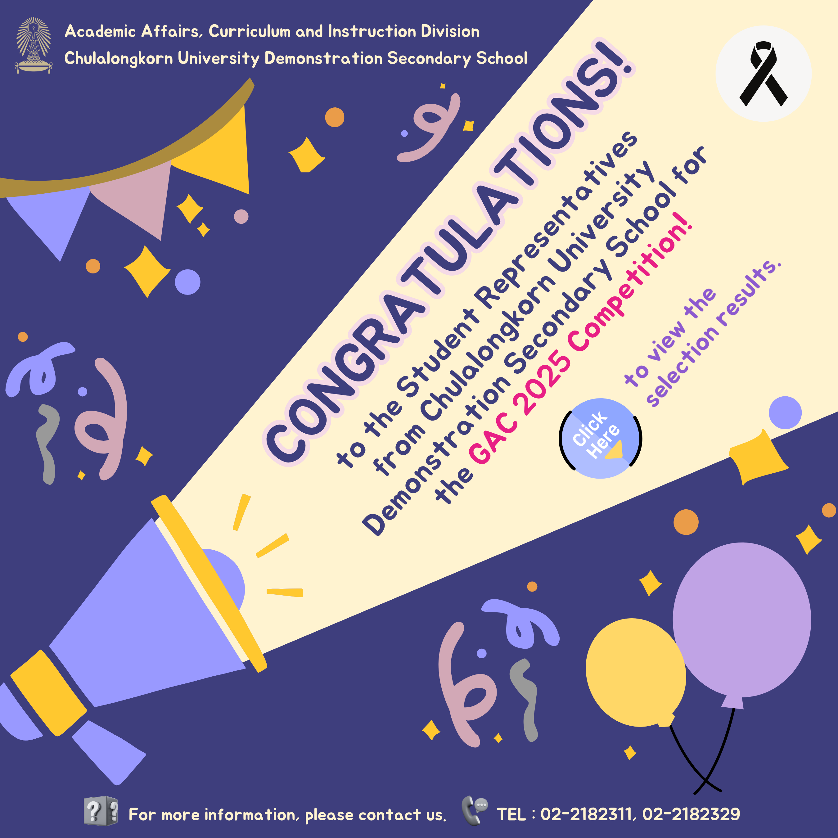 Selection Results of Student Representatives from Chulalongkorn University Demonstration Secondary School for the GAC 2025 Competition