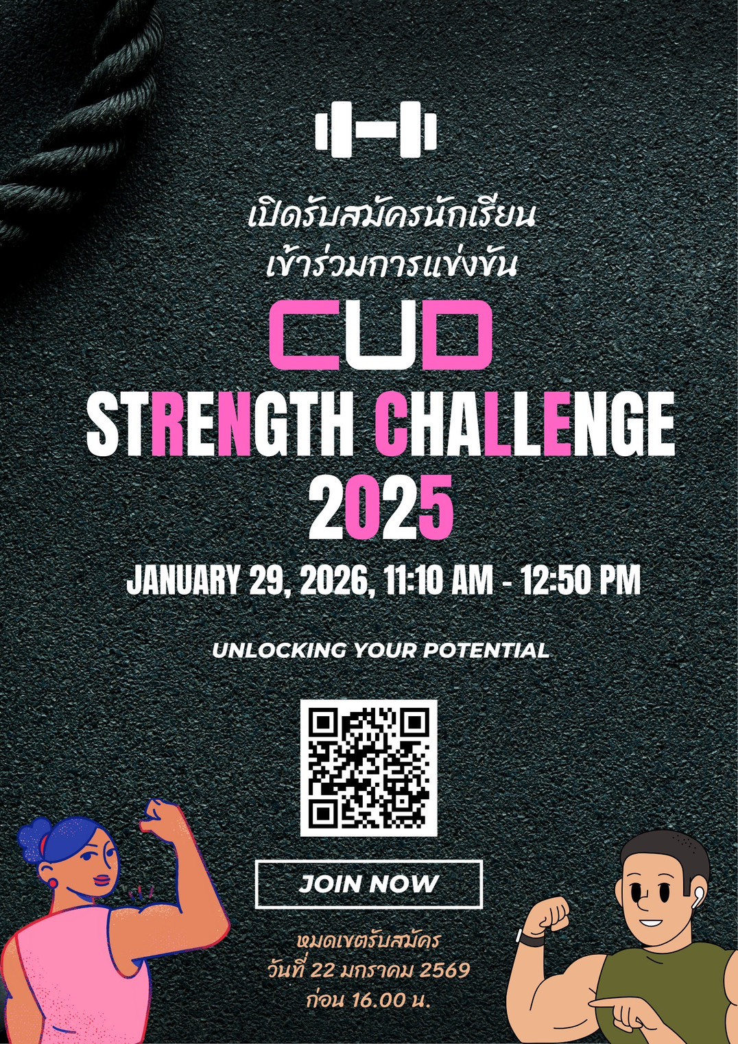 ขอเชิญนักเรียน สมัครเข้าร่วมการแข่งขัน CUD STRENGTH CHALLENGE 2025 (Unlock Your Potential)